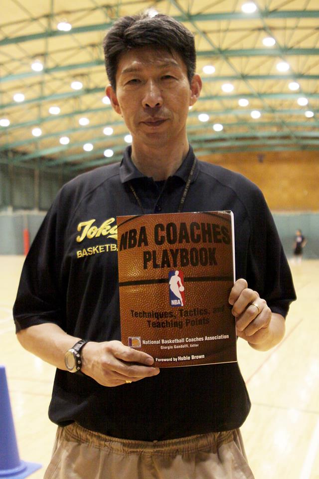 陸川章氏が監修を務めた『NBA バスケットボールコーチングプレイブック』。翻訳をした佐良土茂樹氏と共に。