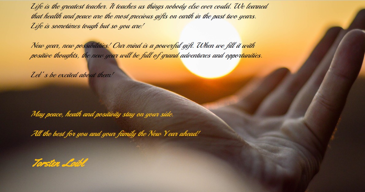 私は、それを確信しています。新しく迎える年をワクワクした気持ちで迎えてみてください。平和と健康とポジティブな考えがあなたの側にありますように。あなたとご家族の新年に幸あれ。トーステン・ロイブル