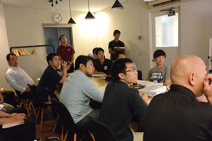 受付や、細かな段取り、同世代のコーチへの案内など細かな部分の一手に引き受けて、サポート側に回った磯野氏、情熱に応じる形で最大限の準備で挑んで下さった尺野氏の熱意により、120分間の勉強会は非常に濃密な内容となった。退室後も建物周辺では名刺交換や意見交換をする姿が目立った。志を同じくするコーチ達が語り合う場面が印象的であった。