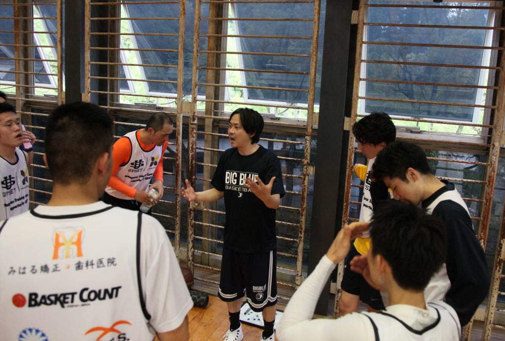 TTCでは、10分単位でゲームを繰り返す形式でスクリメージは展開される。この日の対戦チームだった玉川大学男子バスケットボール部のBチームを率いる学生コーチも、直ぐに急造チームのオフェンスコンセプトや狙いを分析。インターバルの時間を活用し、対応を試みてきた。佐野コーチも、ゲームの経過に合わせて、別の選択肢を選手に提示。相手チームが対応してくることを見越し、シンプルながらも次の一手を用意していた。